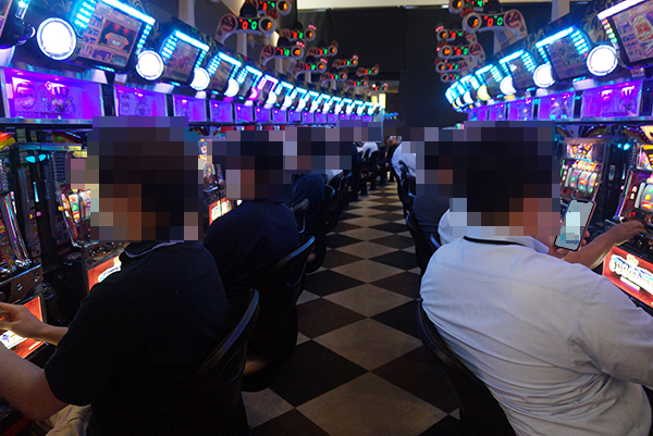 稼働率の高さも印象深く、滞在時はほぼ満席。老若男女を問わずに、たくさんのプレイヤーが笑顔で遊技をおこなっていた。