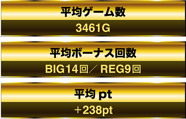華やかなシーンだけでなく、データカウンターも確認すると、ボーナス合算確率が1/140を上回っている台があった。