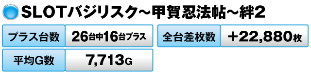 パチスロでは、『SLOTバジリスク〜甲賀忍法帖〜絆2』が素晴らしい成績をあげた。