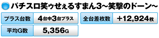 4台中3台がプラスで全台差枚数は+12,924枚をマークした。