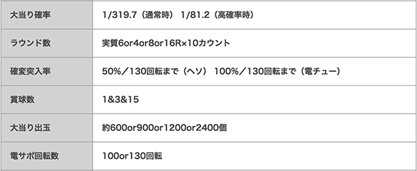 スペックは大当り確率約1/319のST機。