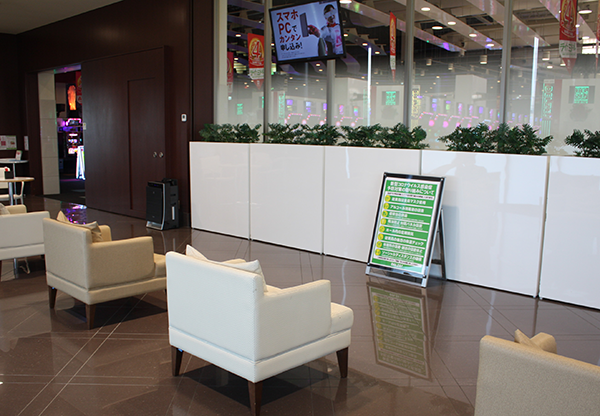 広々とした店内には、落ち着いた雰囲気のレストスペースが完備されている。遊技台がみえる場所にもソファが用意されているため、空き台を待っているあいだもくつろぐことができそうだ。