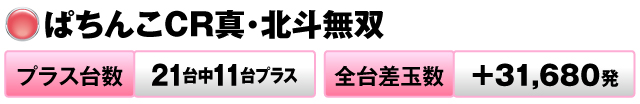 21台中11台がプラスで全台差玉数は+31,680発をマークしている。