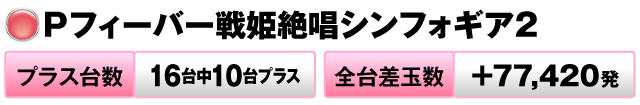 16台中10台がプラスで全台差玉数が+77,420発を記録。