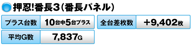 特に「番長パネル」は10台中5台がプラスで全台差枚数が+9,402枚と素晴らしかった。