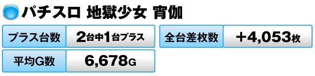 6台中5台がプラスで全台差枚数は+13,006枚だった。