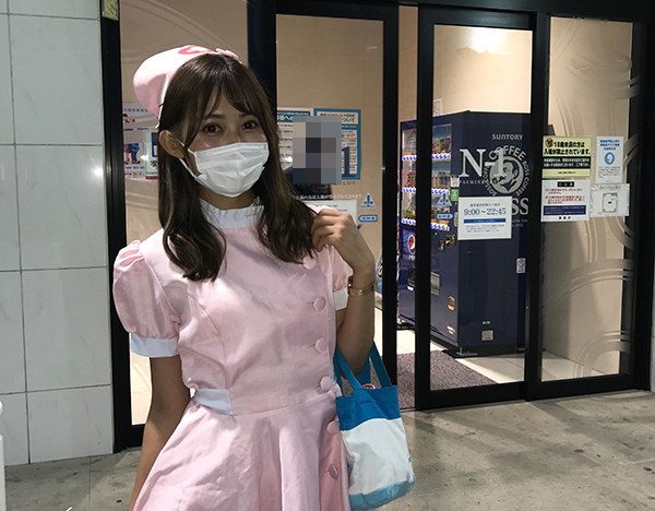 ピンクのナース服風のコスチュームでかわいらしく登場しました!