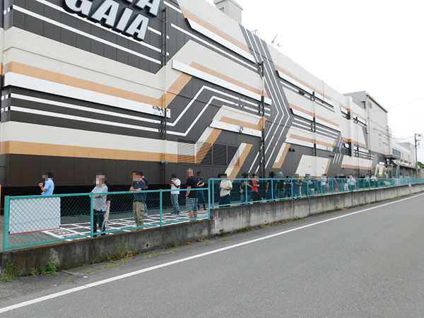 開店前から60人以上のプレイヤーが列を形成。各人とも遊技開始を待ちきれない様子だった。