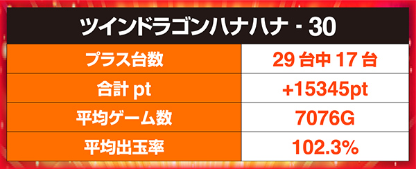 ツインドラゴンハナハナ‐30は29台中17台がプラス!