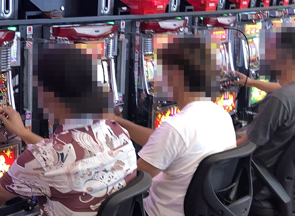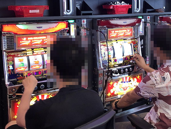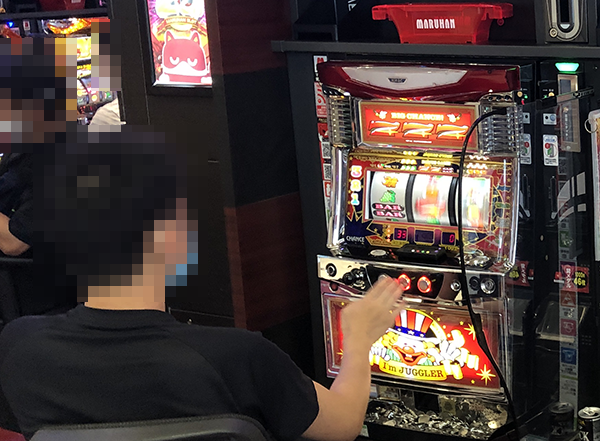 遊技を満喫しているような姿が多いパチスロでは、「ニューアイムジャグラーEX-KA」で活躍をしているプレイヤーに目をひかれた。