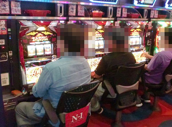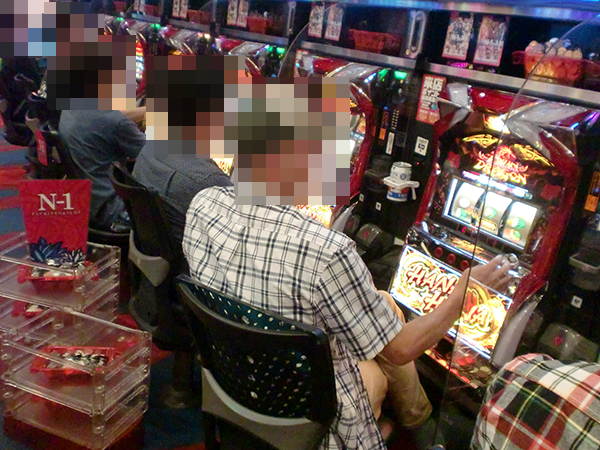 「ツインドラゴンハナハナ‐30」とおなじく、「プレミアムハナハナ‐30」に広がっている光景も華やか。確認時は設置されている19台のうち17台が稼働しており、大きなにぎわいに包まれていた。