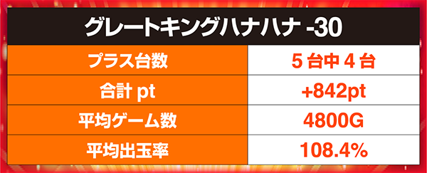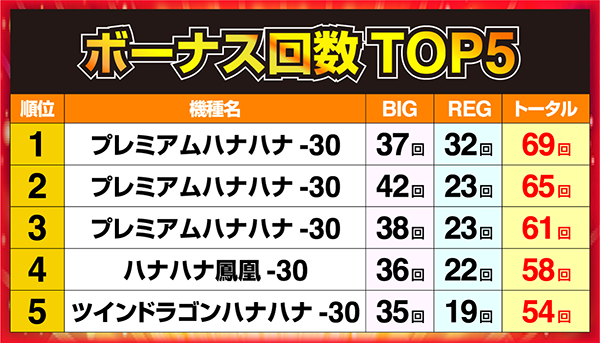 ボーナス回数60回超えの「プレミアムハナハナ‐30」が1位から3位までを独占!