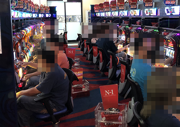 通路や台間にゆとりがあるため、たくさんのプレイヤーが集まっていても、のびのびと遊技をおこなえそうだ。