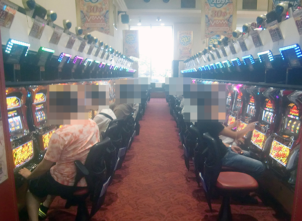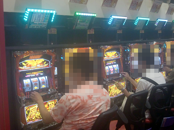 ハナハナシリーズのなかでもとくに台数が多い「ハナハナ鳳凰-30」。確認時は設置されている20台のうち半分ほどが埋まっており、プレイヤーたちの活躍によって稼働率以上の盛り上がりが感じられた。