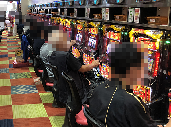 笑顔のゴールデンな輝きを求めて、プレイヤーたちが集まるパチスロコーナーへ足を踏み入れた!!