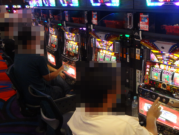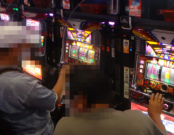 ホールに到着したのは15時頃。店内の状況をうかがうと、さまざまな機種に笑顔をみせるプレイヤーの姿があった!!