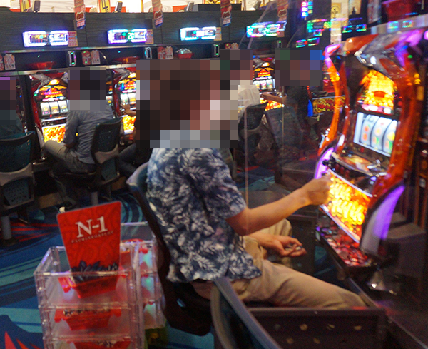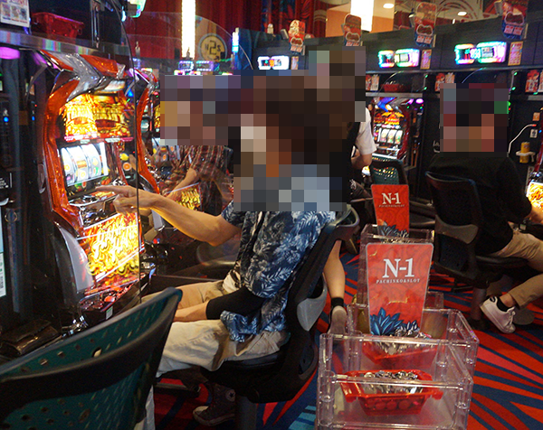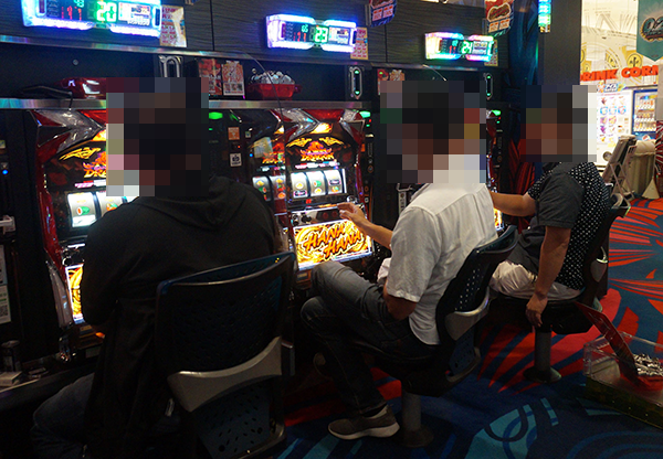 7台設置されている「プレミアムハナハナ‐30」も活況となっており、プレイヤーたちの笑顔も明るい。イキイキとストップボタンを押している姿からは、機種が持つ魅力を堪能していることもうかがえた。