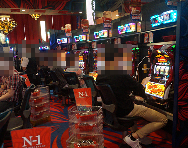 パチスロには曲線状のシマがあり、台間や通路の幅が広くなっている。