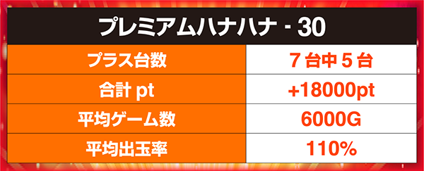 プレミアムハナハナ‐30も半数以上の台がプラス!