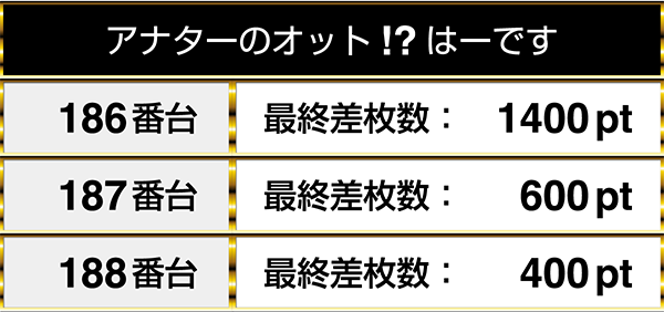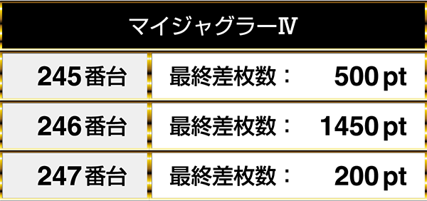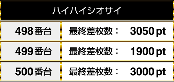 閉店時には3台が固まってプラスptを記録し、1台は1400pt!