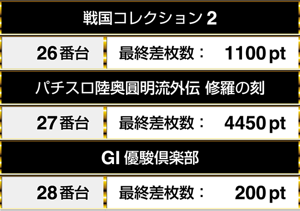『戦国コレクション2』の26番台から『GI優駿倶楽部』の28番台までが並んでプラスpt!!
