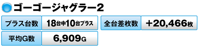 18台中10台がプラスで全台差枚数は+20,466枚だった。