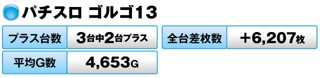 20台中13台がプラスで全台差枚数は+10,460枚だった。