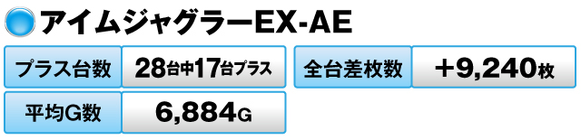 33台の半数以上の17台がプラスで全台差枚数は+30,855枚を記録。
