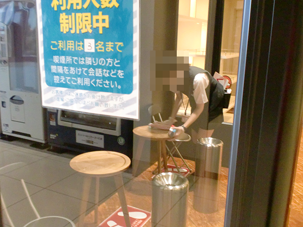 遊技台や喫煙スペースにあるイスをしっかりと拭いているスタッフの姿を発見!