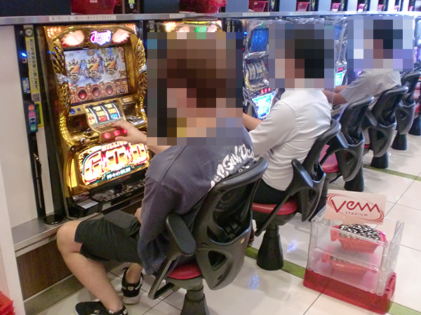 パチンコでは、10台中7台が稼働していた「ぱちんこCR真・北斗無双」が好評。イキイキとした表情でハンドルを握っている姿からは、充実した時間を過ごしていることが伝わってきた。