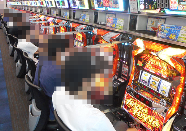 20台設置されている「プレミアムハナハナ‐30」で活気のあるシーンを目撃。プレイヤーたちがうれしそうに遊技をおこなっていたことも覚えている。