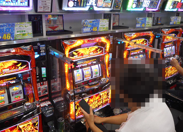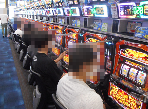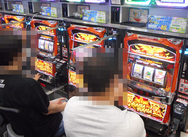 確認時は半分ほどが稼働していた「ハナハナ鳳凰-30」。プレイヤーたちの活躍によって、稼働率の高さ以上の盛り上がりが感じられた。