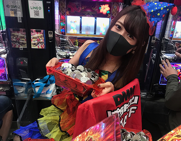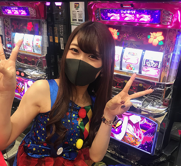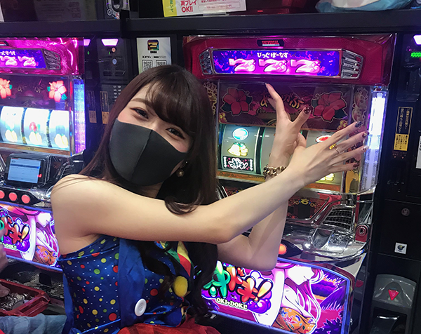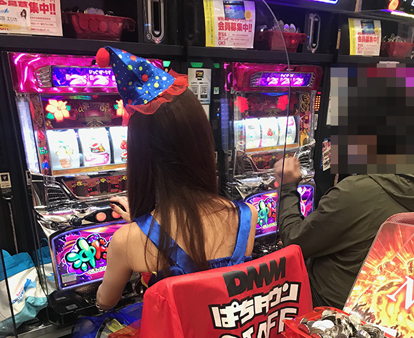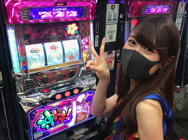 ホール全体がにぎわっているなかで、エリカちゃんはパチスロの「沖ドキ!-30」をチョイスしました。