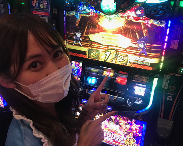 明るい雰囲気に包まれながら、佑紀ちゃんもパチスロの「SLOTバジリスク~甲賀忍法帖~絆2」で実戦☆