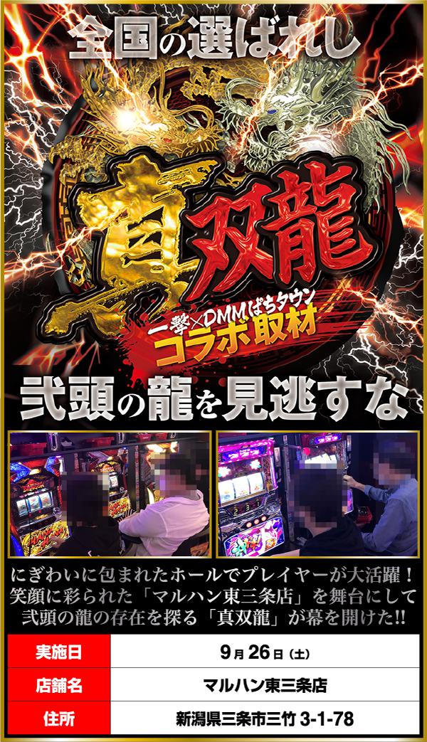 「マルハン東三条店」を舞台に「真双龍」を実施した。