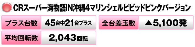 4台中2台がプラスで、全台差枚数は+5,728枚をマークした。