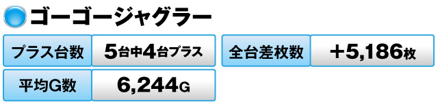 5台中4台がプラスで全台差枚数は+5,186枚を記録。