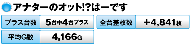 5台中4台がプラスで全台差枚数は+4,841枚だった。