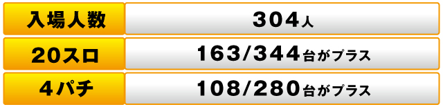 パチスロ全体では、344台中163台がプラスで、トータルの差枚数は+313,744枚という圧倒的な結果に。