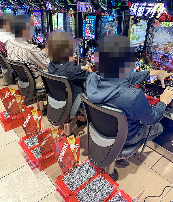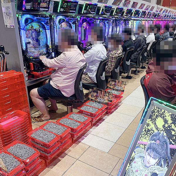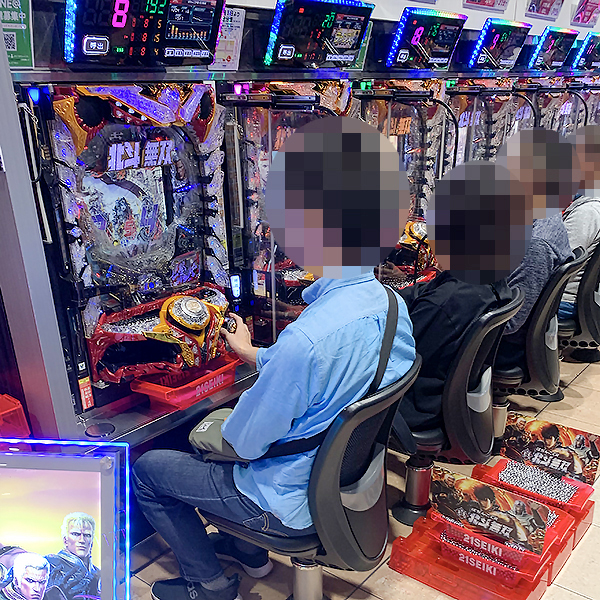 16時半ごろの4円パチンコでは「CR真・花の慶次2〜漆黒の衝撃 2400」や「ぱちんこ 仮面ライダー 轟音」が盛況で、機種性能を上手く引き出すプレイヤーを複数目撃している。