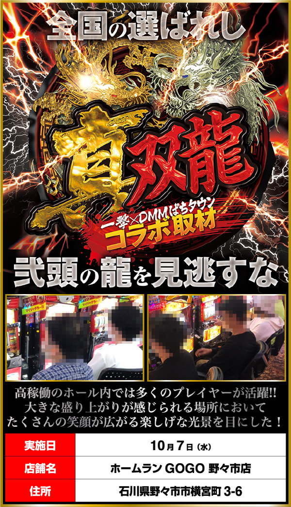 「真双龍」を実施するべくむかった場所は、「ホームランGOGO 野々市店」。