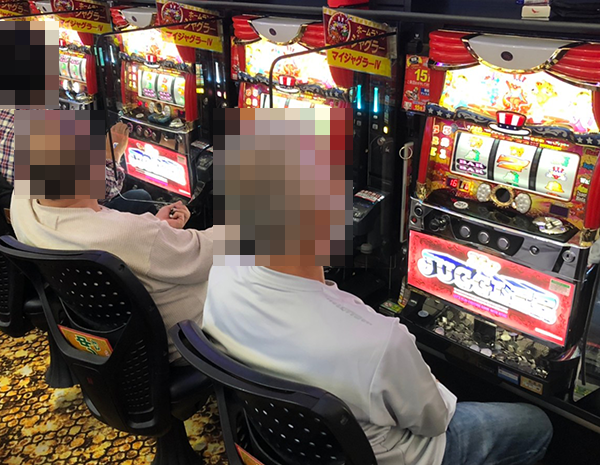 店内をのぞいてみると、パチンコとパチスロの両方に遊技を楽しむプレイヤーの姿があった。