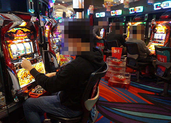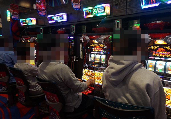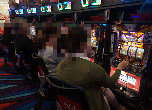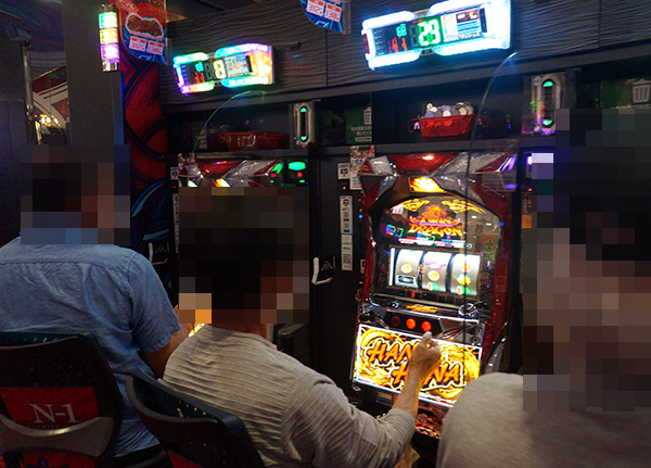 パチスロコーナーではハナハナシリーズとジャグラーシリーズを中心に、いくつもの機種が盛況となっていた。