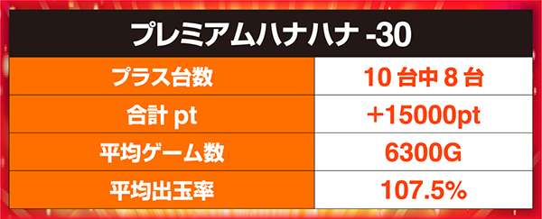 プレミアムハナハナ‐30も機種全体で+10000pt超!!
