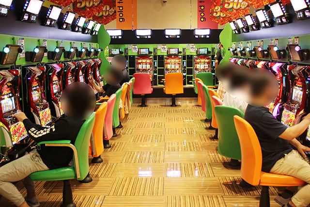 2日間ともに朝から30Φコーナーを中心に人気を集めた「GOLD玉越本店」。『プレミアムハナハナ』から『ハナハナホウオウ』まで、様々なAタイプに好調台を予感させる挙動が見られる遊びやすい状況が広がっていた。
