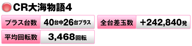 40台中26台がプラスで全台差玉数は+242,840発を記録した。