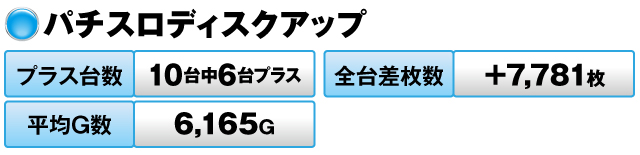10台中6台がプラスで全台差枚数は+7,781枚だった。