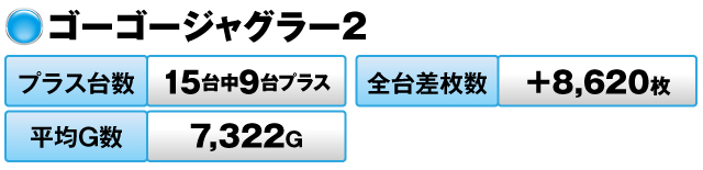 15台中9台がプラスで全台差枚数は+8,620枚をマークした。