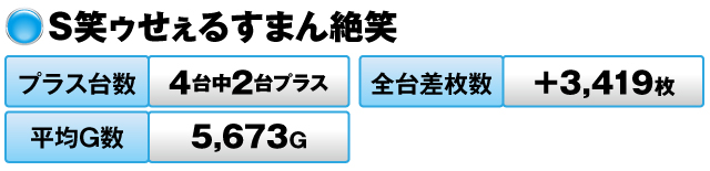 5台中4台がプラスで全台差玉数は+54,850発をマークした。