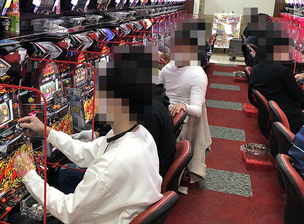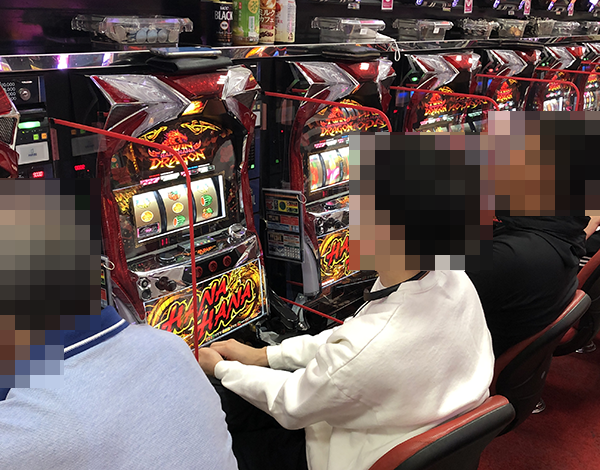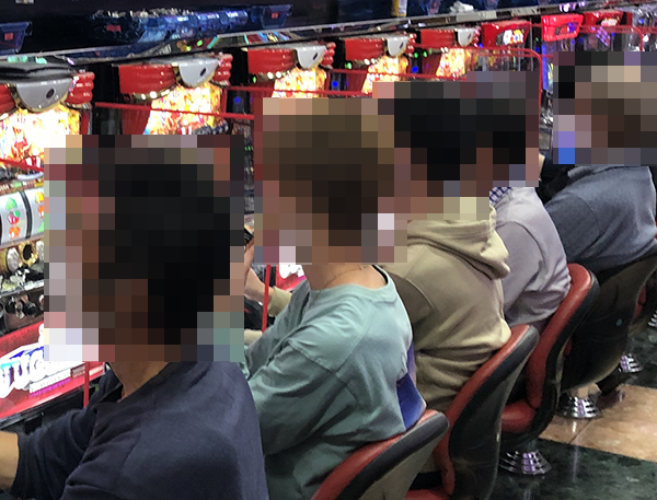 はじめに確認したときは7台中6台が稼働。遊技の様子をみているうちに最後の1台が埋まり、満席となった。